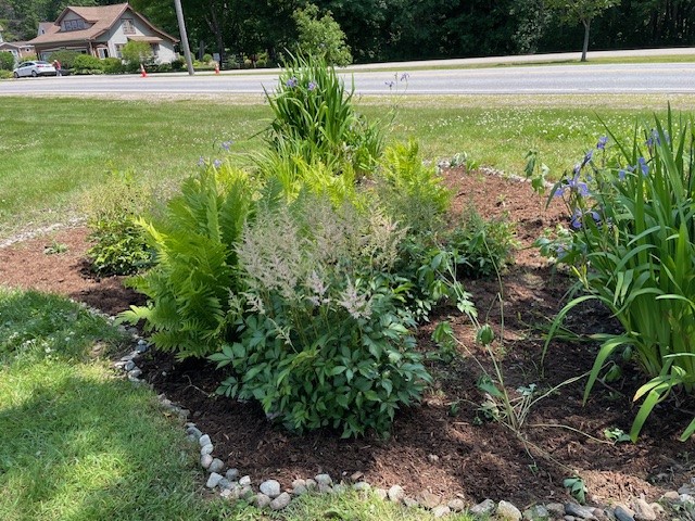 From its first day in August 2023, this rain garden absorbed water that flowed from the road and parking lot. It was absorbed quickly and did not runoff into the storm drains, which lead to the Winnicut River. Since then, it has stood strong against heavy rains and snow melt. Each year, the plants will grow, expand, and reproduce to provide increased water absorption, filtration of pollutants, and habitat for butterflies, birds, and other wildlife.